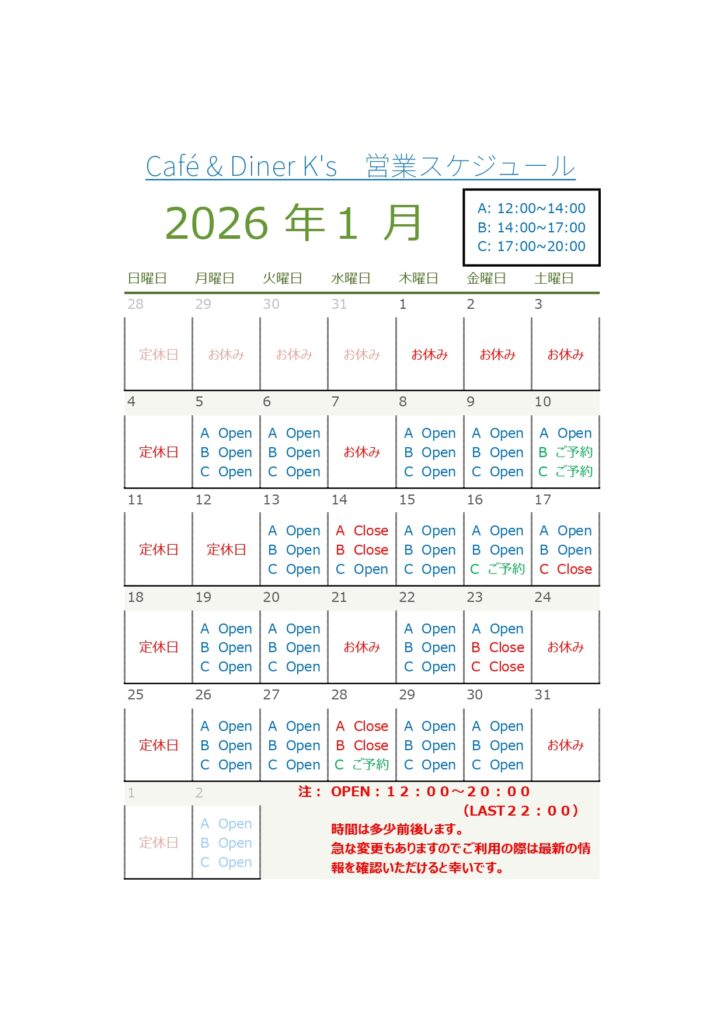 CAFE & DINER K’s にようこそ
